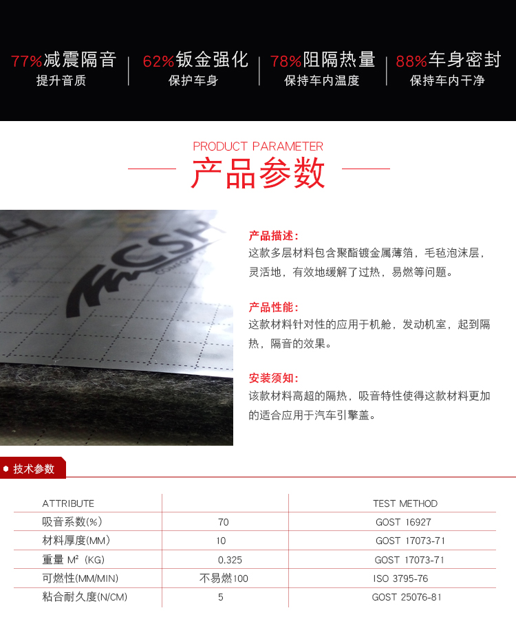 CSH引擎衛(wèi)士Tegmen俄羅斯STP舒適系列汽車隔音材料