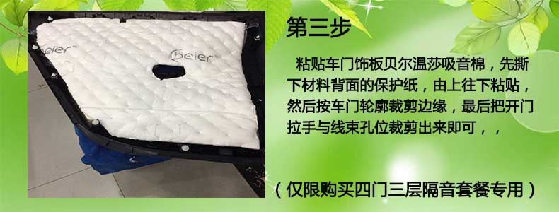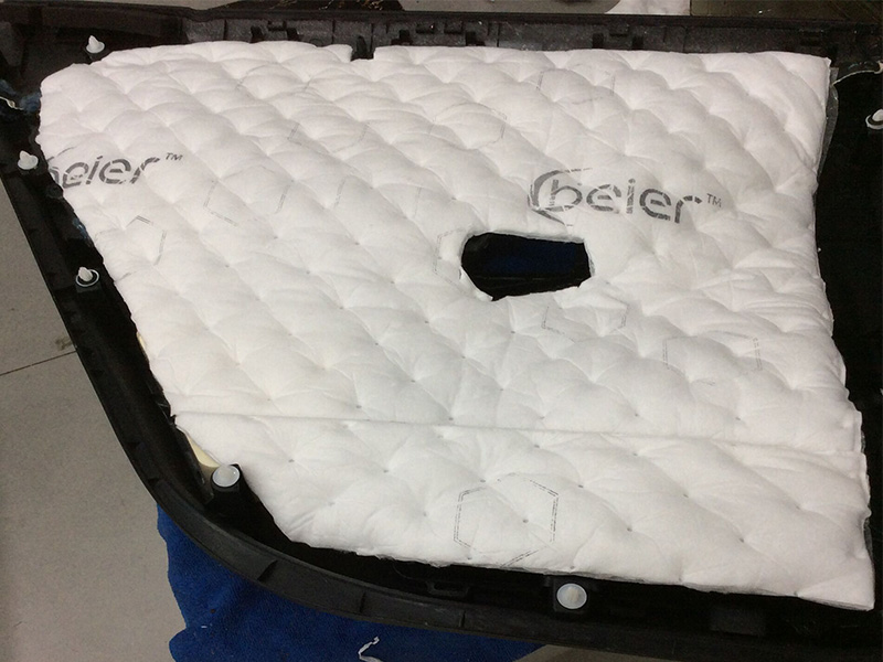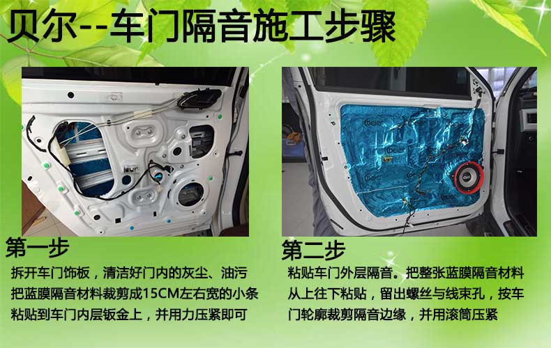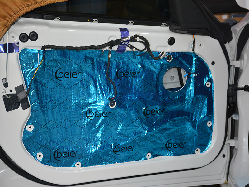 貝爾藍膜三層隔音組合,雙層止震,加單層吸音,三層的做法是汽車隔音中非常好的做法,增加車身性能與密封,加強音質(zhì)效果。同時可以增強音響效果。
