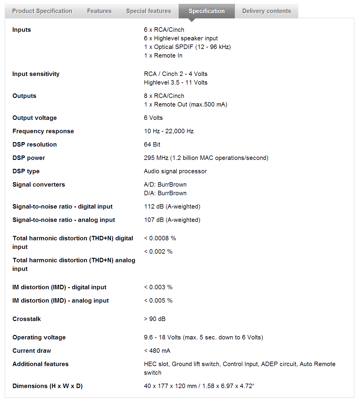 ●輸入:1個 RCA/Cinch,6個高電平,1個光纖SPDIF