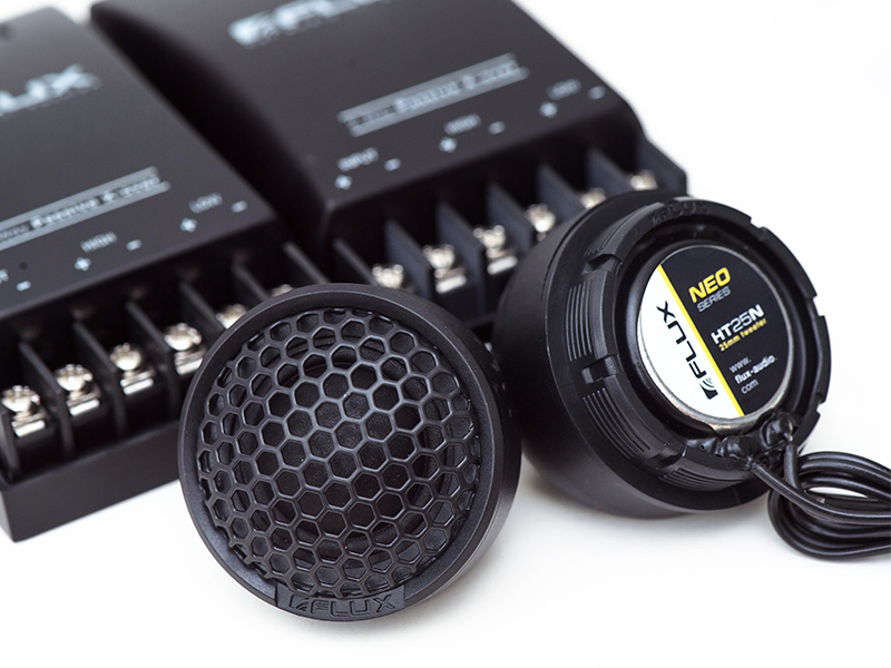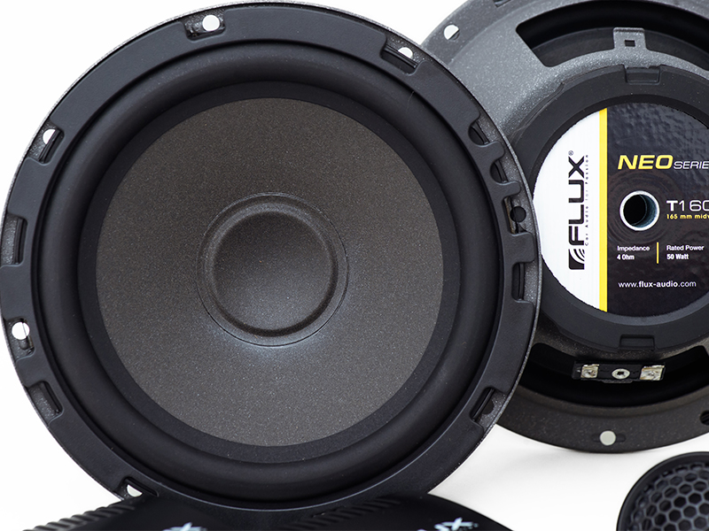 NEO-260兩分頻套裝中,6.5英寸的FLUX T160N中低音使用白色紙質(zhì)音盆為基底,表面加入噴砂特殊涂層處理,特殊涂層處理包括中央的防塵帽,聲音更透亮。整體除了讓聽感柔和真實之外,橡膠懸邊以及CONEX材質(zhì)彈波設(shè)計則保證喇叭有長沖程展現(xiàn)出眾的低頻聽感,滿足還原管弦樂等作品的大動態(tài)表現(xiàn)。值得一提的是,采用精制鑄造的盆架單元散熱也特別好,而且中低音喇叭的安裝深度僅為60mm,適合大部分車型不需另外倒模直接安裝即可。