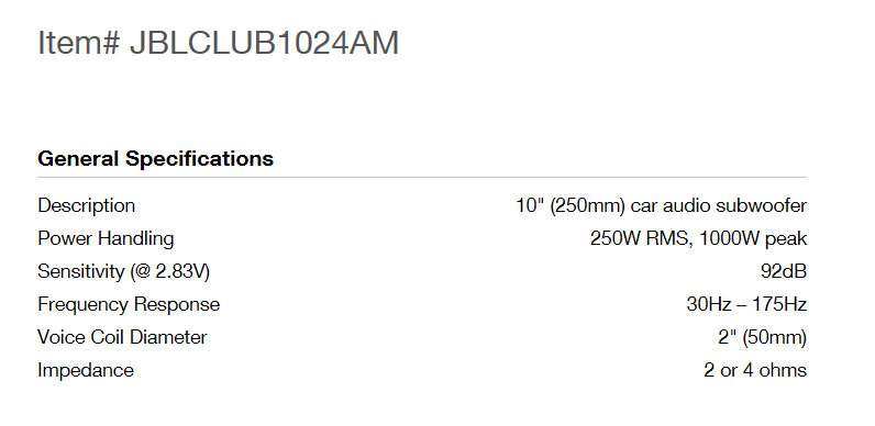 JBL Club1024 10寸低音喇叭