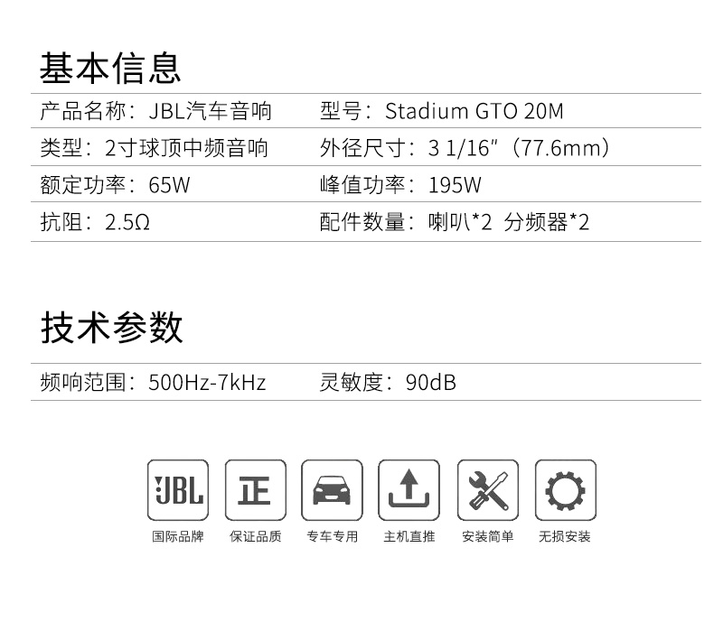 JBL CLUB6520同軸喇叭,50W實際功率,92DB靈敏度,