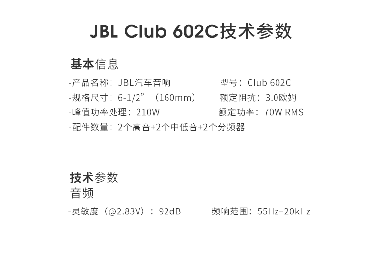 JBL CLUB6520同軸喇叭,50W實(shí)際功率,92DB靈敏度,