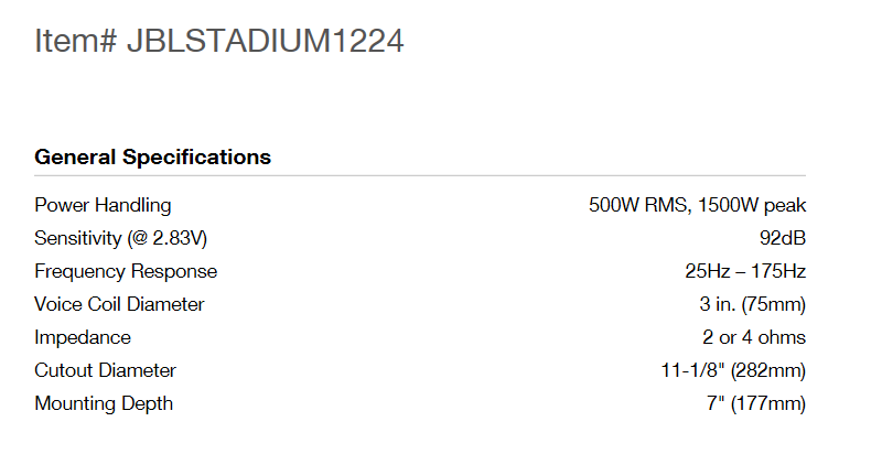 5.低音喇叭:美國JBL  Stadium1224  12寸雙音圈