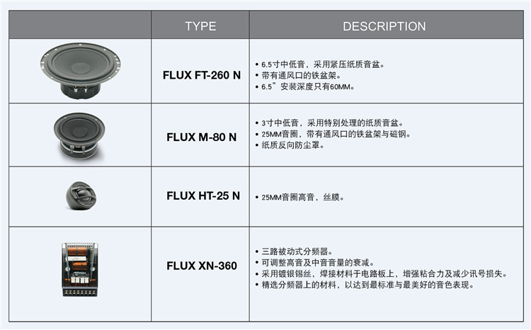 6.5寸;中低音,使用特制的表面涂層白色紙質(zhì)音盆。