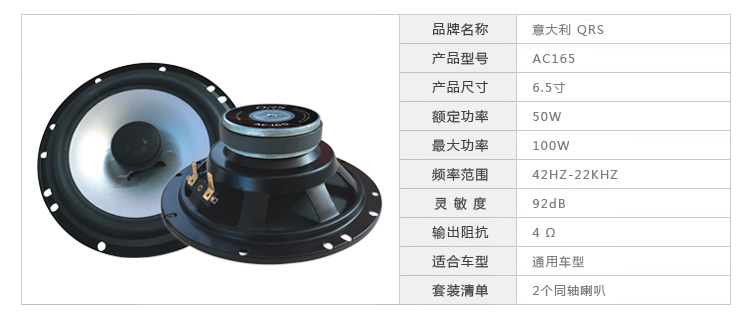 專為無損改裝設(shè)計、讓客戶輕易快速提升音效,QRS工程師研究了上百款原車音響的安裝位置與原車音響功率等問題,,并根據(jù)這些特點(diǎn)進(jìn)行研發(fā)。AS系列產(chǎn)品采用釹鐵硼磁鐵與質(zhì)量更輕盈強(qiáng)度更高的聚丙烯盆組合,讓原車功率完全發(fā)揮出來,是初級發(fā)燒友至愛,高低音層次分明、失真低、低音豐滿有力,動態(tài)響應(yīng)好,定位準(zhǔn)精準(zhǔn)