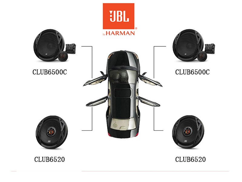JBL無損改裝套餐,前門配置CLUB6500C套裝喇叭,后門配置CLUB6520同軸,此喇叭功率小,靈敏度高,高音通透,中音厚實,低音強勁. 不想加功放的無損選擇。