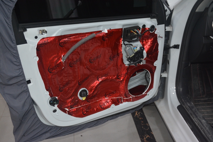 2.通過(guò)隔音、減振材料對(duì)汽車進(jìn)行減振及隔音處理,降低汽車鈑金結(jié)構(gòu)傳遞的噪音,提高駕駛舒適度。對(duì)門(mén)板隔音, 車門(mén)的隔音處理里外雙層要貼上的隔音材料,在車門(mén)的兩層鋼板上分別貼上一層頂級(jí)隔音材料,可以起到良好的隔音、制振、密封的多重作用,封閉的車門(mén)腔為喇叭提供了一個(gè)音箱箱體,使喇叭的性能得到充分發(fā)揮,尤其對(duì)改善聲場(chǎng)的中低頻效果作用巨大.