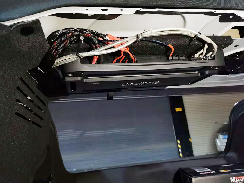 功放尾箱吊頂擺放,很多改裝店也會(huì)選擇這樣的做法,因?yàn)椴坏梢允∥恢枚铱梢粤己蒙幔ǖ菍I(yè)的功放吊頂施工還是必須把細(xì)節(jié)處理好,因?yàn)檐囀墙?jīng)常運(yùn)動(dòng)的,要不然開著車突然掉下來就不好了)