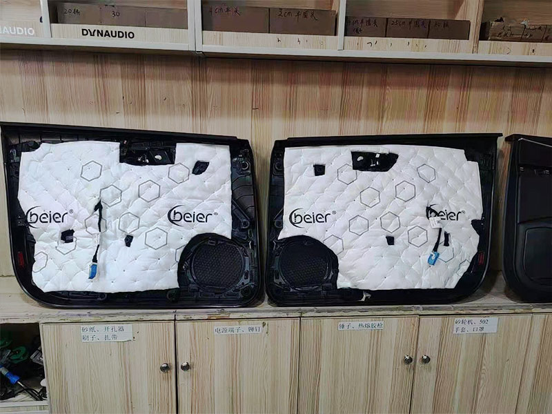 第一層隔音做好之后接著做第二層隔音。做好第二層之后才可以進(jìn)行喇叭焊線、墊喇叭墊、安裝喇叭等系列操作!下面是完成效果圖
