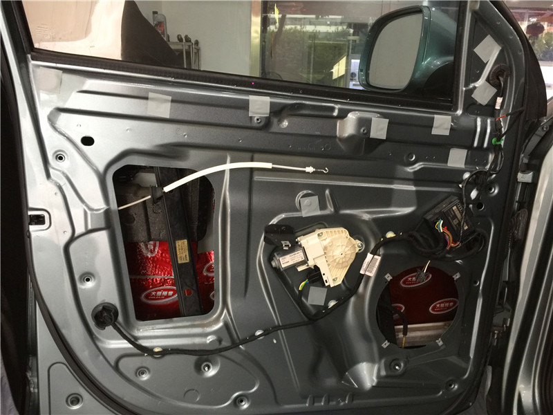 拆開(kāi)四門(mén),首先做四門(mén)隔音,為喇叭創(chuàng)造一個(gè)良好的發(fā)聲環(huán)境。