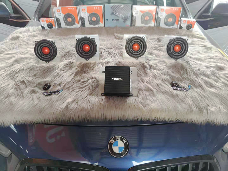 可以看到的是依舊是JBL的喇叭,但今天的稍微有點(diǎn)不同,這套喇叭是寶馬車的專用喇叭,就是原車原裝的,就專門(mén)給寶馬車型定制的這么一套喇叭,加裝了一臺(tái)圣美歌的DSP,還有就是貼四門(mén)隔音,我們接著往下看看。