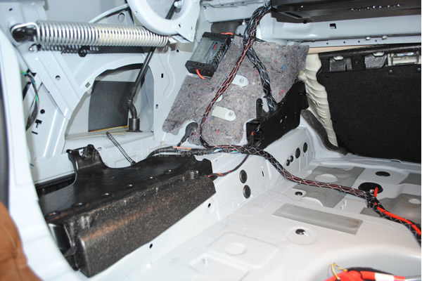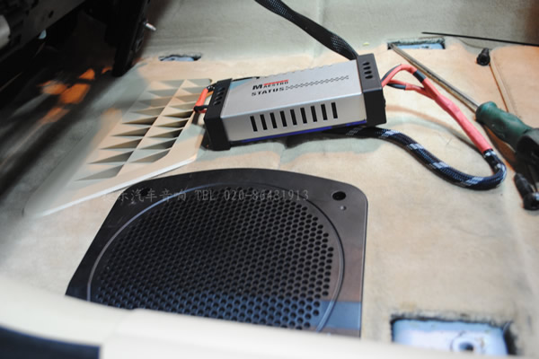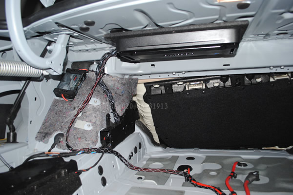 功放安裝在尾廂上邊隔音上,