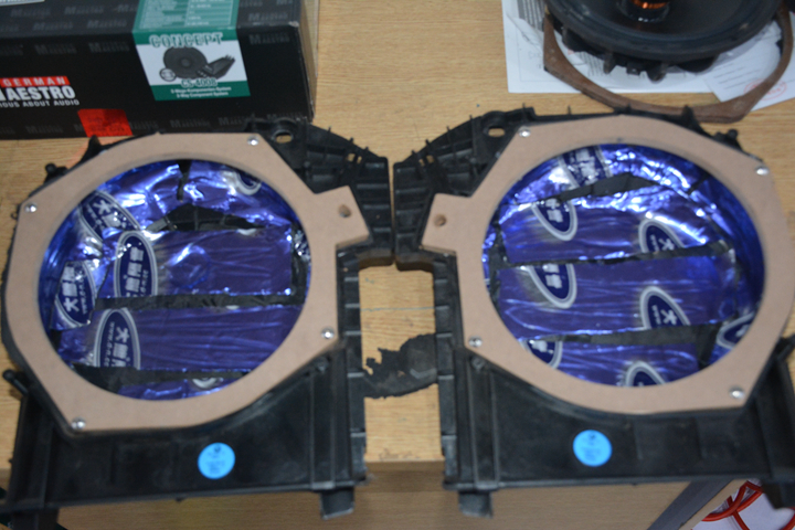 曼斯特中音喇叭安裝在門板。一樣加裝木墊圈;