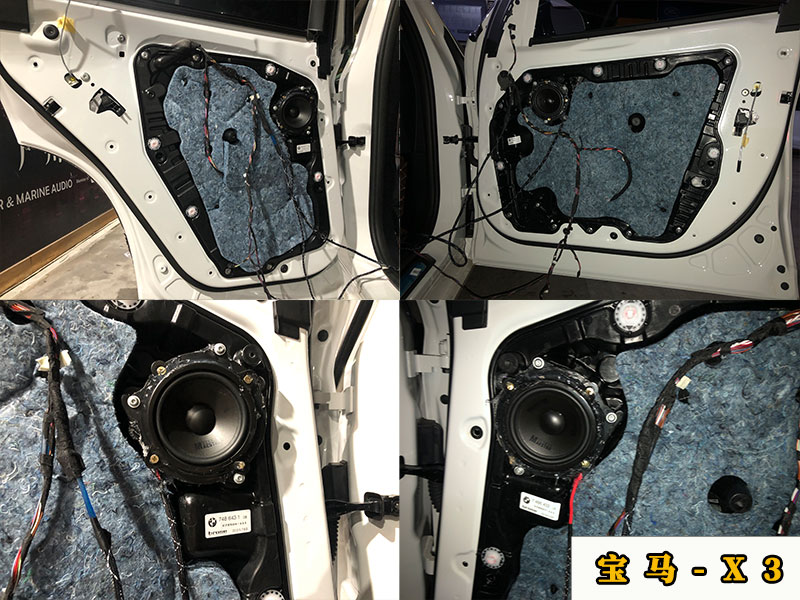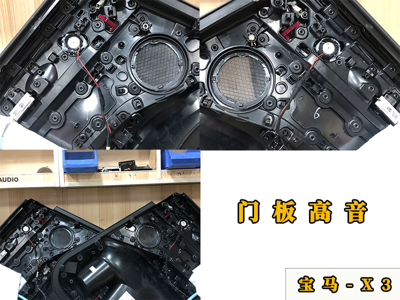 這里用到的高音網(wǎng)罩都是原廠的高配網(wǎng)罩。低配的寶馬X3角位那里是沒有高音喇叭的,升級(jí)后才有網(wǎng)罩和高音喇叭!后門加裝的高音喇叭也是同樣的道理,都是更換了新的網(wǎng)罩。