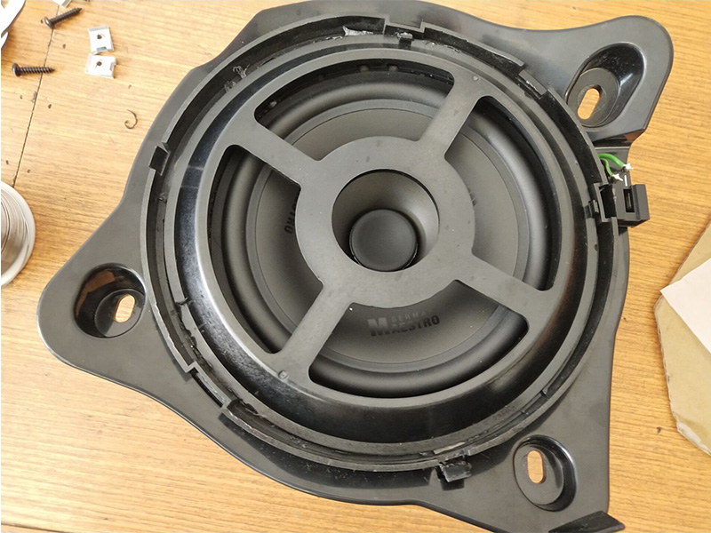 下面我們來看看曼斯特奔馳專用喇叭MB4.2FR的安裝過程:將喇叭上貼上密封條,讓喇叭安裝上后更加密封,能發(fā)揮更好的效果,喇叭接線端處用焊錫將其焊好,并用熱縮管進(jìn)行保護(hù),將四寸超薄中音安裝到原位用螺絲固定