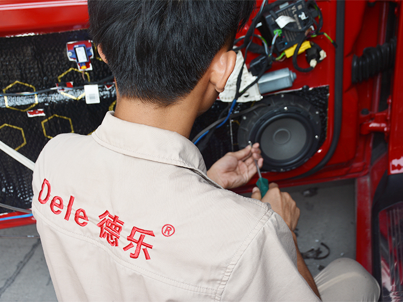 喇叭的安裝是非常的嚴(yán)謹(jǐn)?shù)模t色和黑色的位置處,使用最好的絕緣熱縮管套緊,不但是為了好看,更是為了安全防止短路。非常重要部位