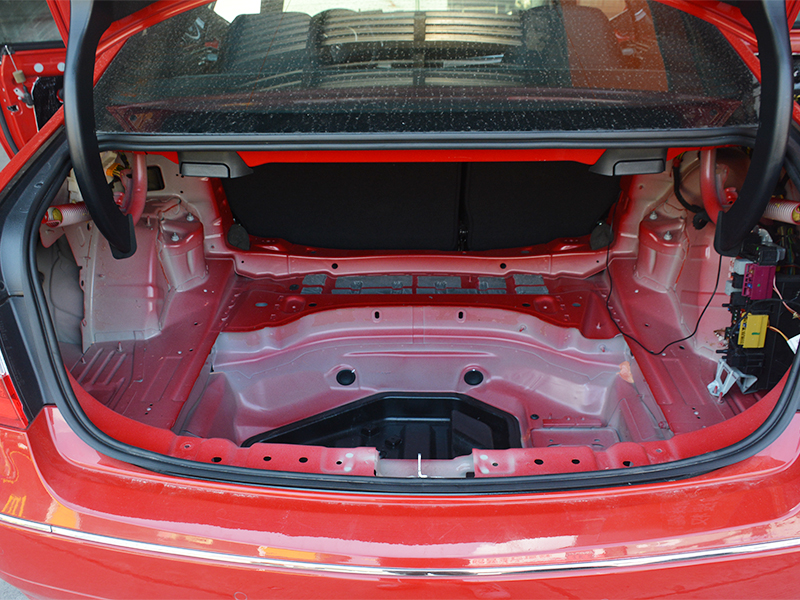 開始施工,安裝貝爾黑金剛加強(qiáng)版隔音對原車的鈑金進(jìn)行加厚