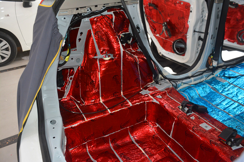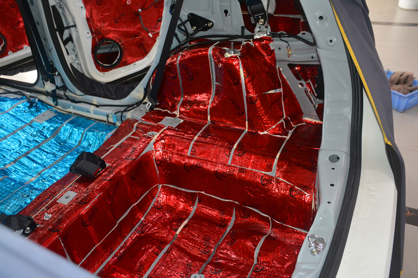 尾廂選擇了貝爾紅膜加強減震材料,厚度是普通的材料的1.3倍