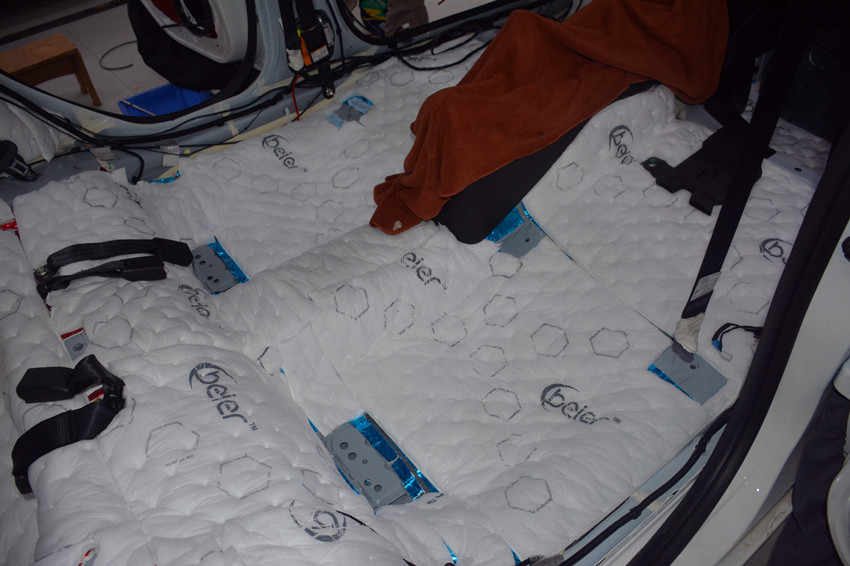 開始隔音之前,先做好車聲保護,并對全車進行檢查驗車,防止在施工過程中的小意外。拆座椅和內(nèi)飾件,原車隔音塊很少的,所以噪音比較大。