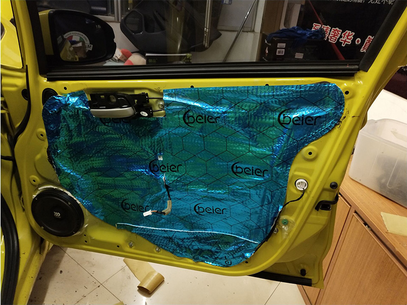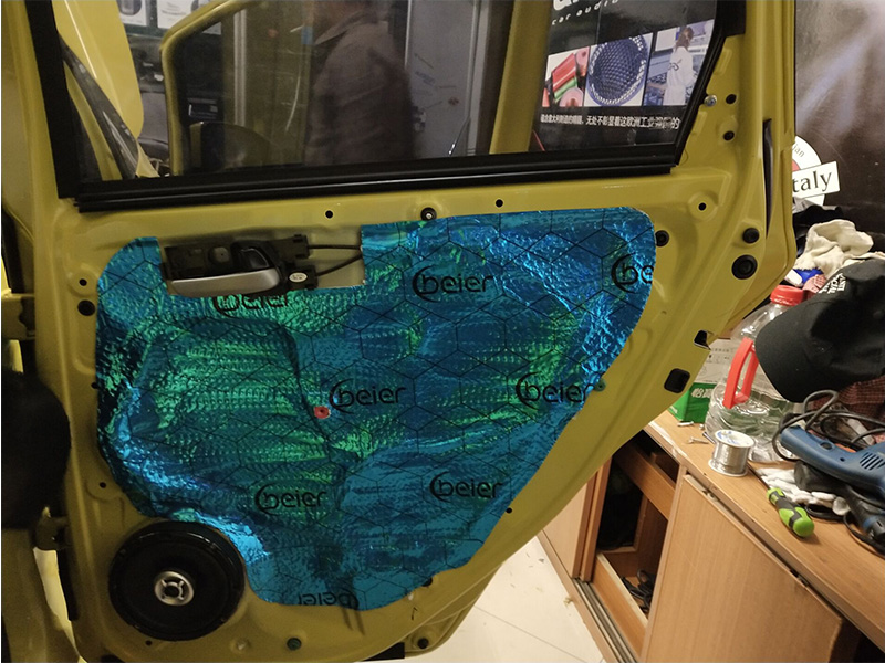 四門隔音,對車門鈑金進行強化、減震和密封處理,能達到良好的隔音效果。前門隔音后在中低音喇叭原位安裝上摩雷瑪仕舞