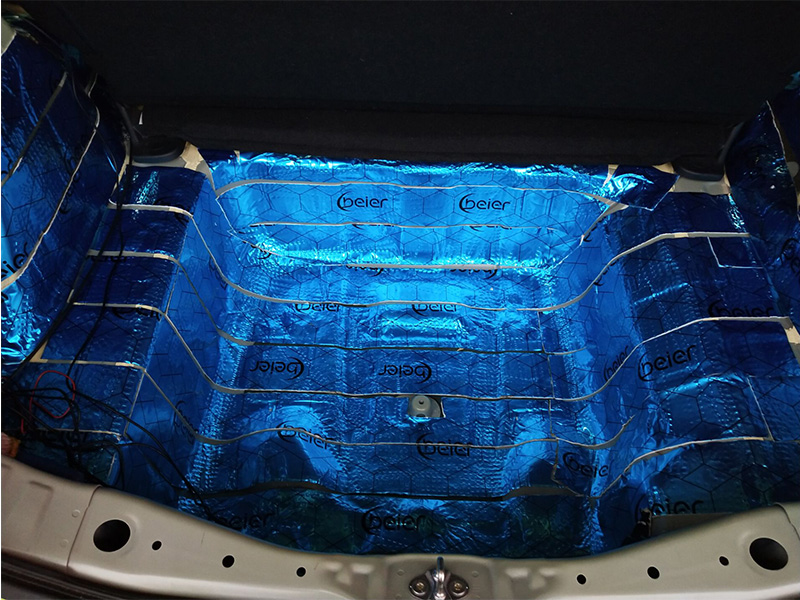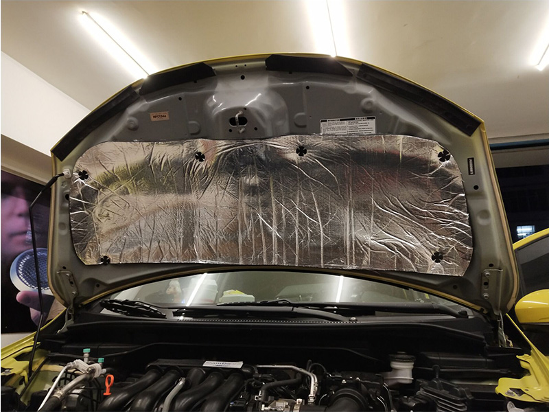 引擎蓋單薄的鐵皮十分容易因發(fā)動機的快速運轉而產(chǎn)生振動,除了發(fā)動機自身的噪音還夾雜著金屬振動的聲音,噪音進一步擴大。于是,在引擎蓋粘貼貝爾隔音材料,有效止震、減噪、隔熱。
