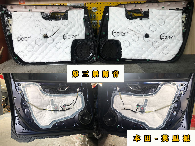 門板隔音的話就一共是三層,第一層是止震,增加門板的厚度減少共振。第二層隔音是密封。形成好的傳播環(huán)境。第三層是吸音棉,主要是降噪作用。上面還有原車的一個(gè)門板狀態(tài),可以對(duì)比一下。