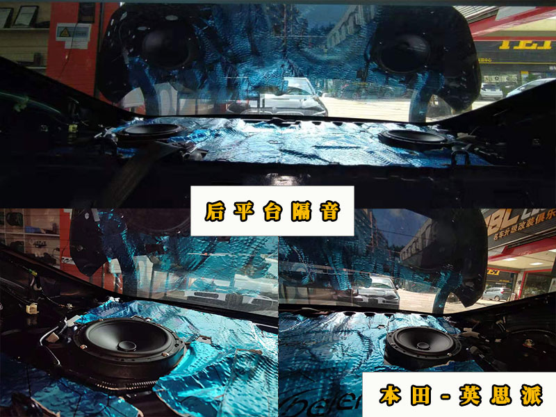 英思派的后排喇叭也是轉(zhuǎn)移到了后平臺(tái)上。一樣是貼了一層止震板,還有一層吸音棉。這邊也可以看到蓋板上是有兩個(gè)高音的。后平臺(tái)位置的喇叭是不需要防水罩的,畢竟不在門板上。也就不存在漏水的說(shuō)法了。