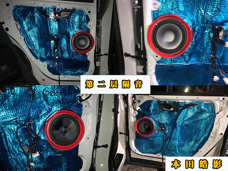 第二層隔音是封閉整個(gè)車門,讓車門變成一個(gè)音箱。做完第二層隔音之后就可以安裝喇叭了,這里需要更換專車專用的喇叭墊和防水罩。每款車都是不一樣的,這樣才能做到真正的無(wú)損升級(jí)。