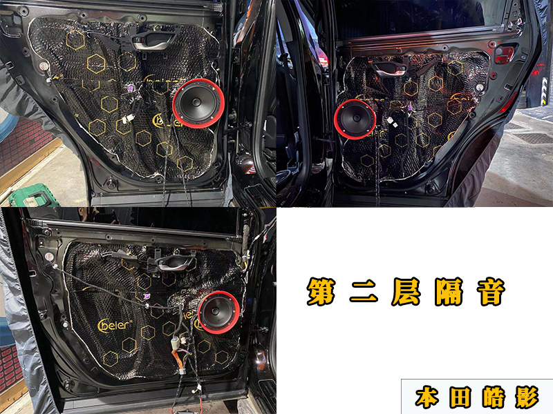第二層門板隔音是做密封的,就是把車門密封起來提供一個較好的車內(nèi)環(huán)境,音質(zhì)也會有相對應的提升。聲場會聚攏很多。其次就是喇叭的安裝是,基本無損的,專車專用的喇叭墊和防水罩。直接連接輸入上螺絲就可以了。前門的高音位置分別是在A柱旁邊和后門板上,直接更換就可以了。