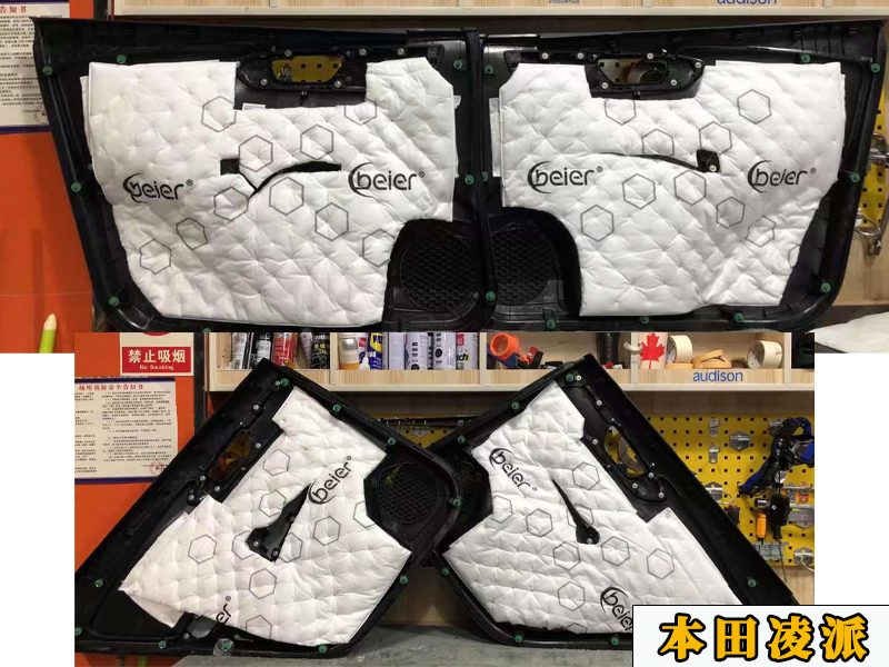 現(xiàn)在看到的是三層隔音的第一層隔音!貼在內(nèi)壁增加鋁板的厚度,可以減少共振和風(fēng)噪,高速行駛的噪音都會少很多!其次就是提升音質(zhì)效果!