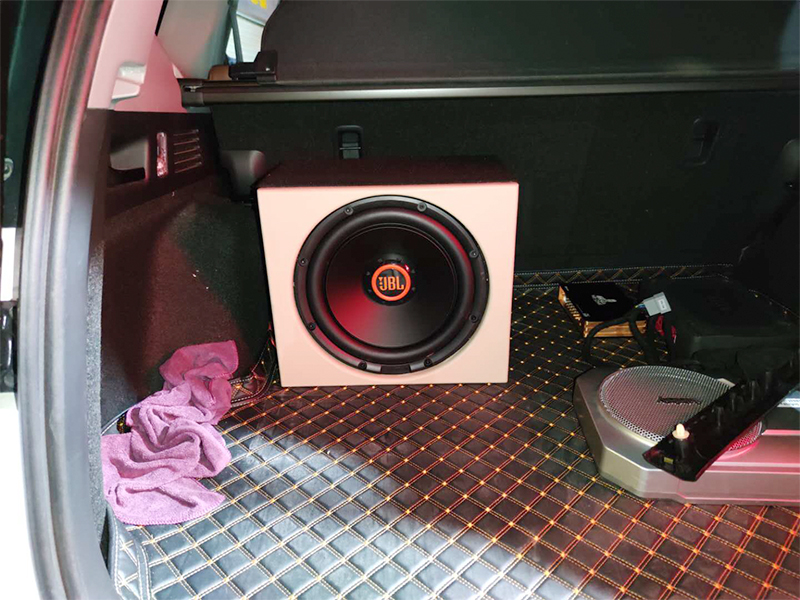 因為車主對音質效果非常的有要求,所以升級JBL高配低音炮,定制箱體