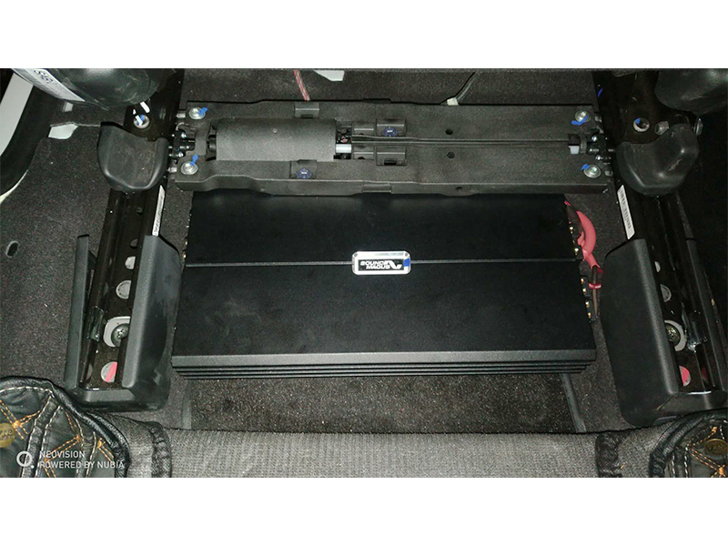 因為低音炮的功率要求非常的高,所以經過專業(yè)額計算公式選用了圣美歌的EA1500.1發(fā)燒級功放無損安裝