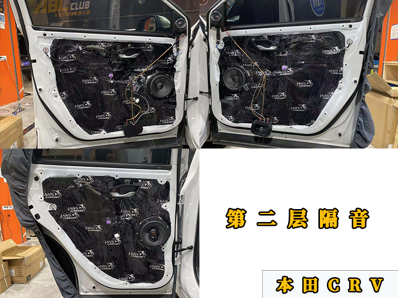這兩CRV是在外面買(mǎi)的產(chǎn)品,這邊是負(fù)責(zé)安裝的,來(lái)看看都裝了些什么東西。四門(mén)的喇叭是JBL的600C和兩個(gè)同軸喇叭,還可以看到加裝了一臺(tái)DSP和一臺(tái)D低音炮。