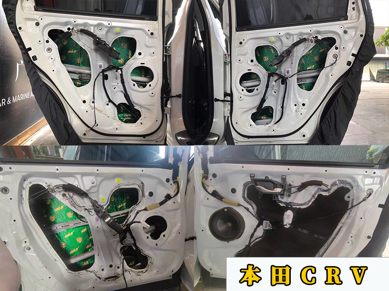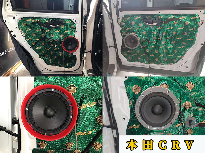 第二層隔音和喇叭的安裝。第二層隔音是密封整個(gè)車門的,一樣是提供好的音響環(huán)境。還可以制造音箱。貼好第二層隔音之后就可以安裝喇叭了,在原來(lái)的位置換上一個(gè)本田CRV的專用喇叭墊。就可以直接把喇叭安裝上去了,無(wú)損的,沒(méi)有開(kāi)孔也沒(méi)有打洞。外面的那一層是防水罩。