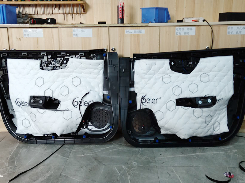 第三層使用貝爾吸音棉對原車門的異響進(jìn)行處理吸音