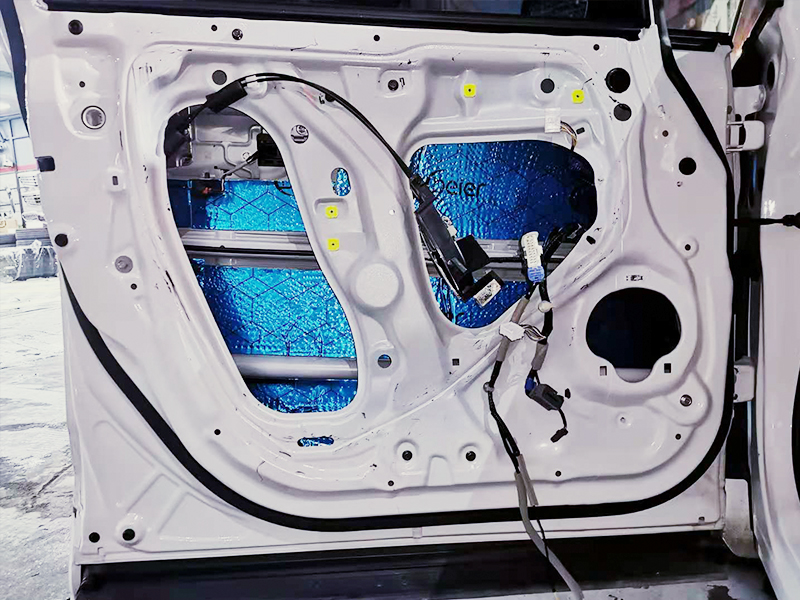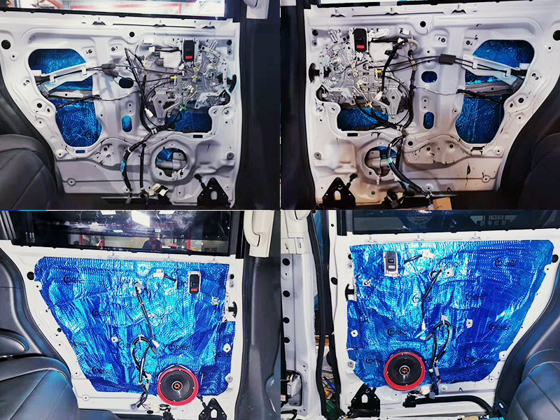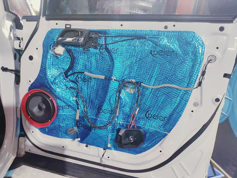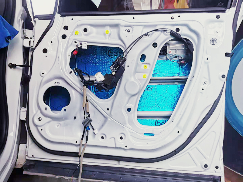 安裝好內部的排線后,還要在車門的外側用隔音棉做二次的密封。增加聲音的回響