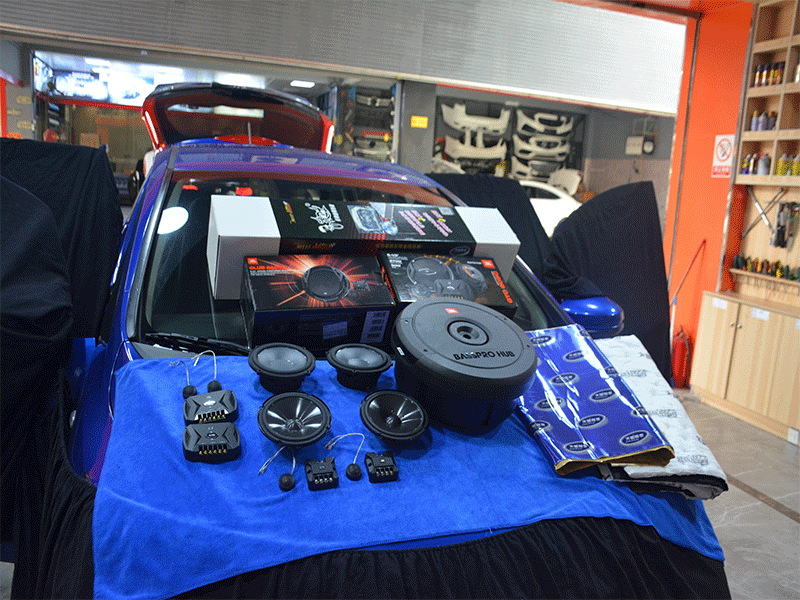這款本田飛度的原車只有前聲場有一對喇叭,連高音也是沒有的,同時后門沒有喇叭,喇叭用料簡單,所以音質很差,無法滿足車主的要求,