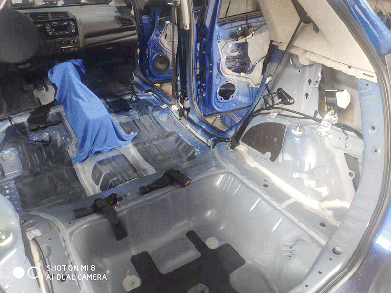 飛度這款車因為屬于經濟型的實用車,所以拆開之后都是比較簡單簡陋,接下就讓我們進行底盤隔音施工升級