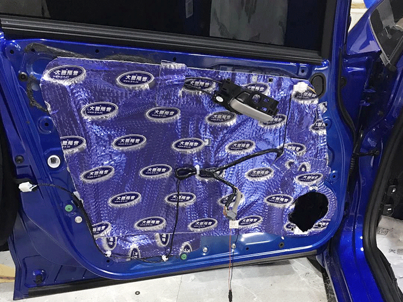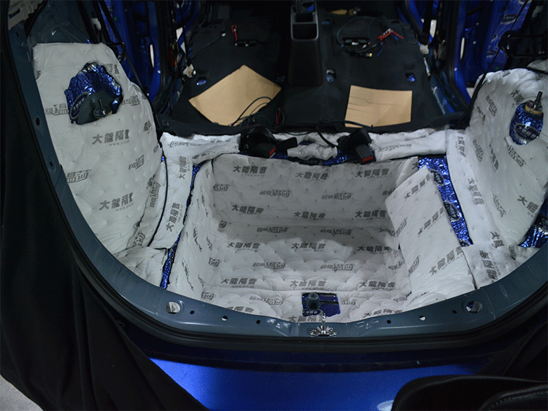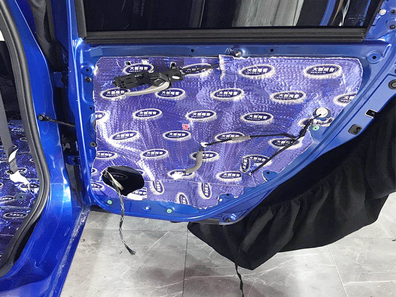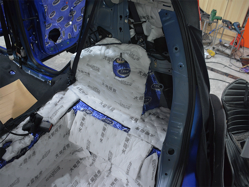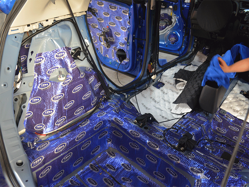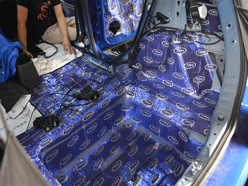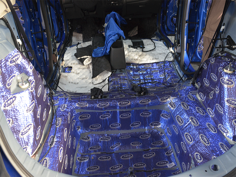 第一層就是大能的藍金剛止震板,廣州德樂汽車音響施工團隊施工,大大減小了行駛過程中底盤傳來的噪音