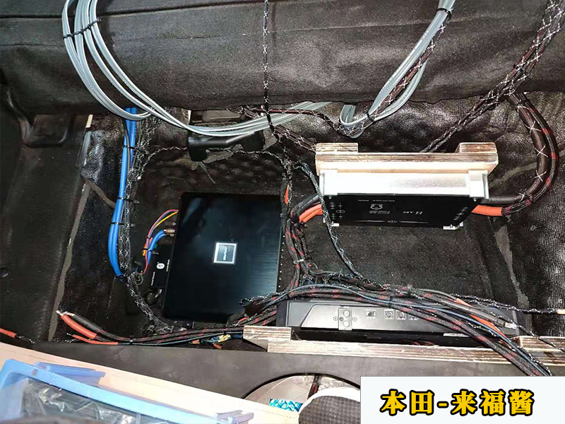 后尾箱倒模放的是處理器、電容、箱體炮、還有三臺(tái)卡文的功放。