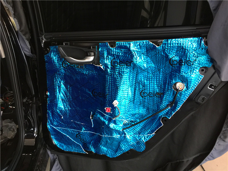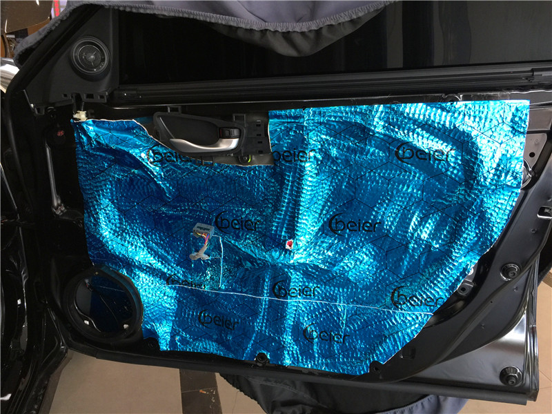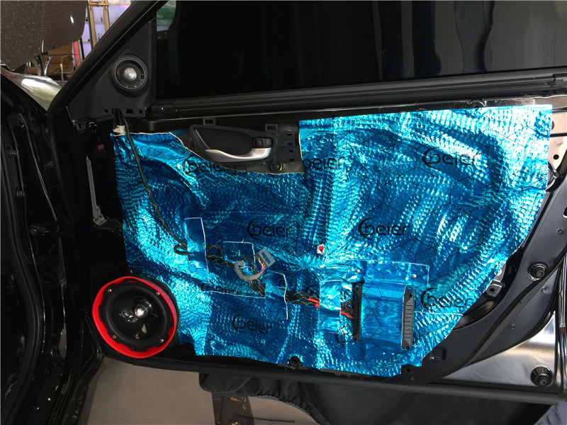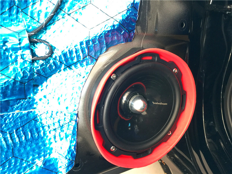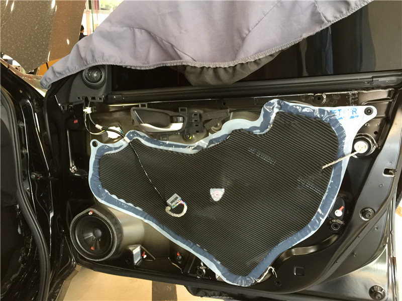 在安裝喇叭前,改裝師對(duì)四門做了專業(yè)的隔音。門板的隔音工程是重中之重,其作用一方面可以提高門板的剛性和密閉性,減少門板鐵皮共振產(chǎn)生噪音,同時(shí)也大幅度降低風(fēng)噪入侵的程度,達(dá)到隔音的效果;另一方面,門板隔音可以讓門板的空間形成類似變成不規(guī)則的“密閉箱”,喇叭在箱體工作的效果自然要好一些,提升汽車音響效果。