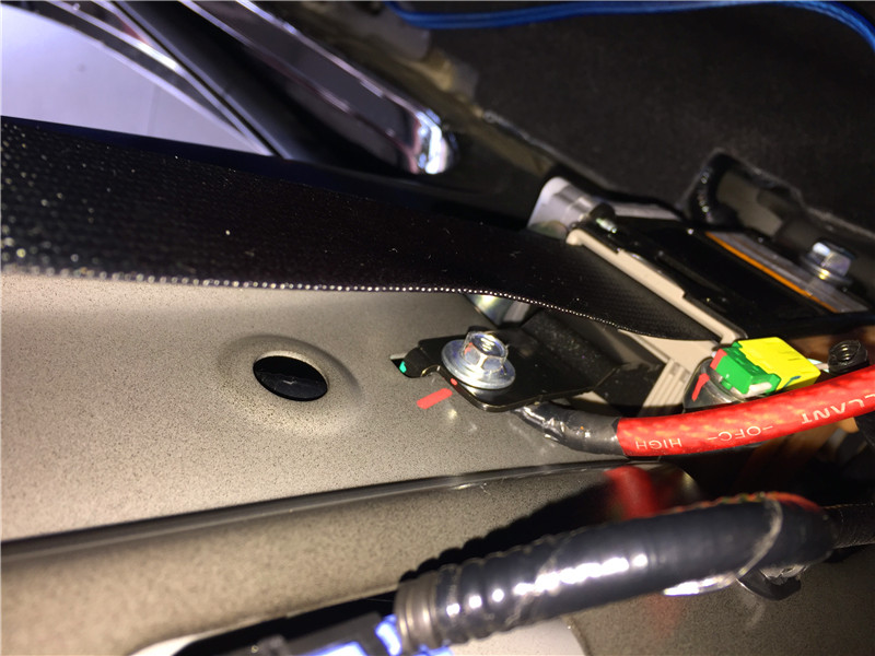 功放安裝,這是以前車主在其他店改裝過(guò)的,一看就是不專業(yè)的做法,所以說(shuō)選擇專業(yè)店安裝很重要。