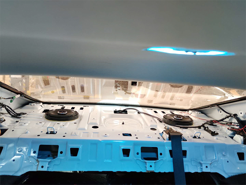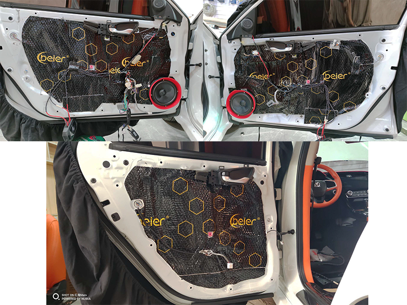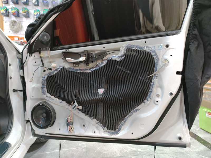 經(jīng)過改裝師傅專業(yè)的清理之后,對(duì)第一層鈑金進(jìn)行隔音處理,加厚鐵皮減少共振