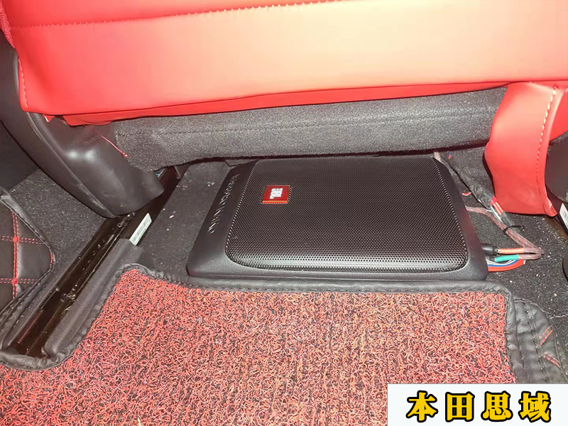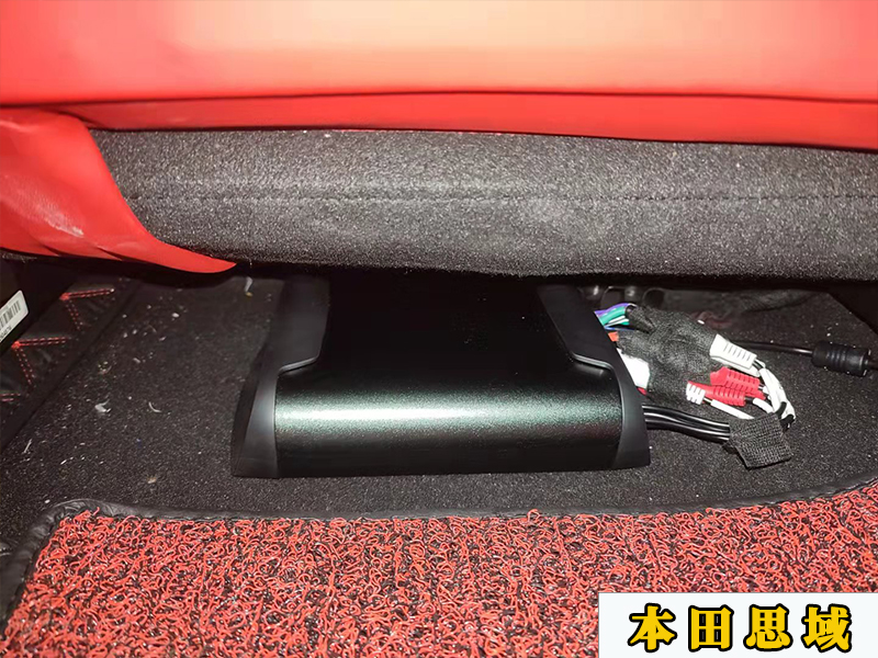 低音炮和處理器都是放在座位下面的,處理器是有思域的專用連接線的,直接拆開中控插上去就可以了。另一端接上處理器就可以使用了。低音炮則是從電池那里拉的電源,同樣是連接到處理器上做電腦調(diào)音。