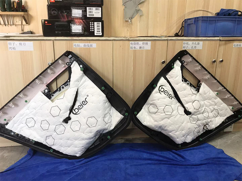 接下來,就是第三層使用貝爾高級溫莎吸音棉,對異響進(jìn)行處理解除