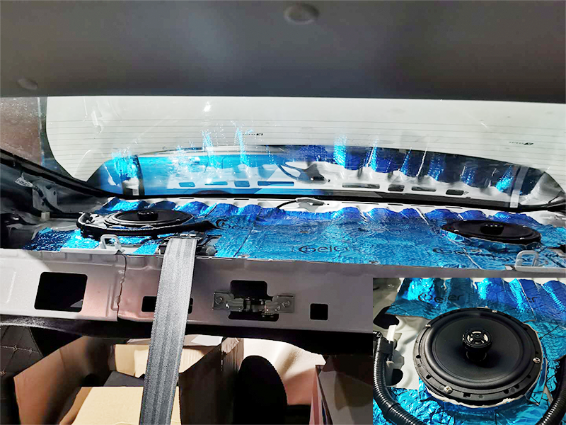 后聲場喇叭位于后平臺位置上,為了避免喇叭共振,我們都是為此做貝爾雙層隔音
