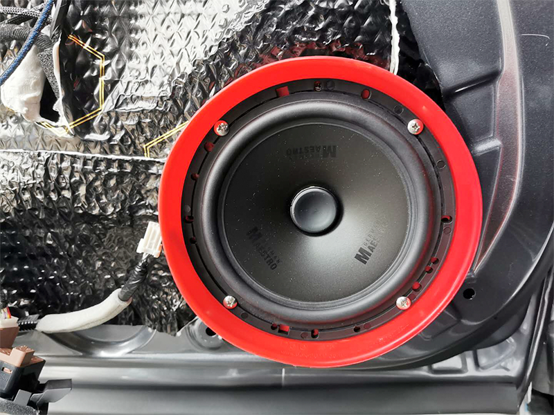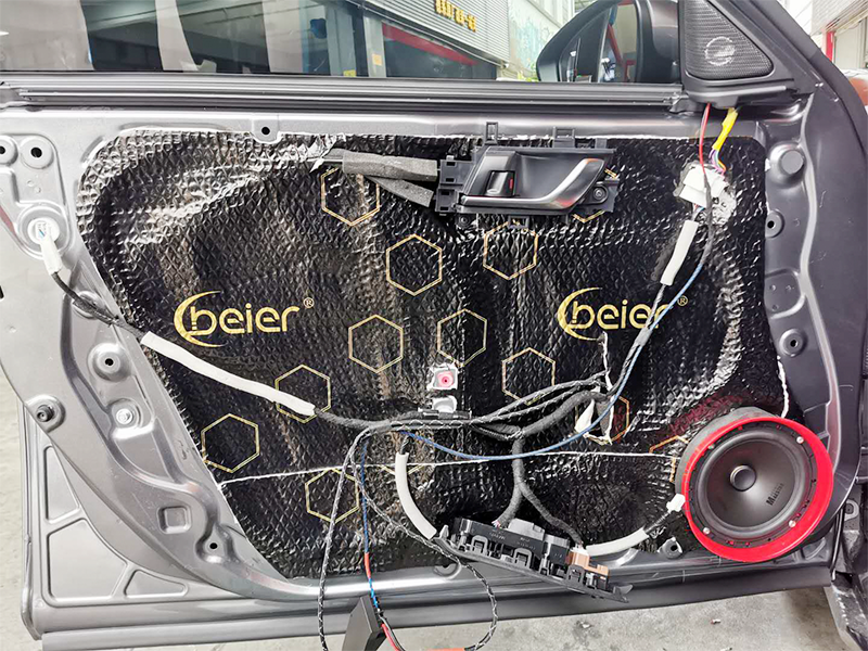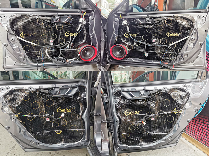 好的音響需要好的環(huán)境好的箱體,原車門板的鈑金太單薄非常容易產(chǎn)生共振,影響喇叭的音質(zhì)效果同時產(chǎn)生異響。所以必須使用貝爾黑金剛加厚音箱箱體