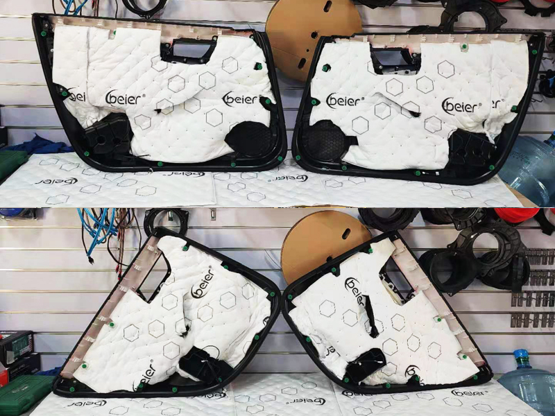 隔音棉,又稱是減震板,我倒覺得這個名字比較適合,他的原理就是增加你門板鋁板的厚度,鋁板厚度不夠是產(chǎn)生異響和風(fēng)噪還有共振的主要原因。它不是說直接隔音,而是一種間接的關(guān)系。三層隔音的搭配也能讓您的車門環(huán)境相對比較安靜,也能減少音質(zhì)的失真。