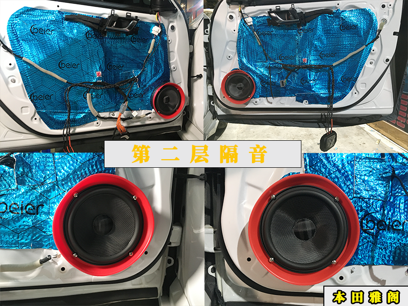雅閣的四個中低音分別是在前門兩個、后平臺兩個!后門上是沒有喇叭的,但還是做了隔音,畢竟整車的四門隔音做好還是挺不錯的,不然總感覺缺點(diǎn)什么!有的車主還會選擇做全車隔音的,不過還是得看需求和個人追求的。第二層隔音主要是密封作用,喇叭的安裝全都是專用喇叭墊。整車的損耗是可以完全放心的。畢竟無損升級可不是說說而已!